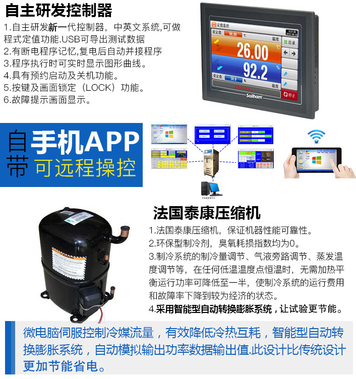 電源 | AC220/380V,50/60Hz & 1∮/3∮ | 控制器 | 自主研發觸屏智能控制器 | ||||||||